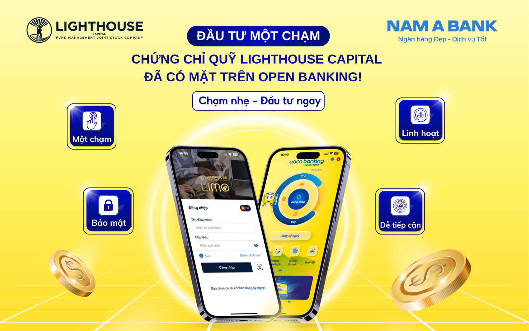 LIGHTHOUSE CAPITAL x NAM A BANK: “All in one” – RA MẮT TÍNH NĂNG ĐẦU TƯ QUỸ MỞ TRÊN ỨNG DỤNG NGÂN HÀNG SỐ